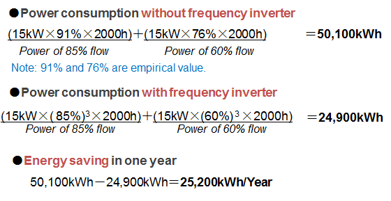 (4) In theory, if the running frequency is H1, then Energy Saving = 1-(H1/50)3